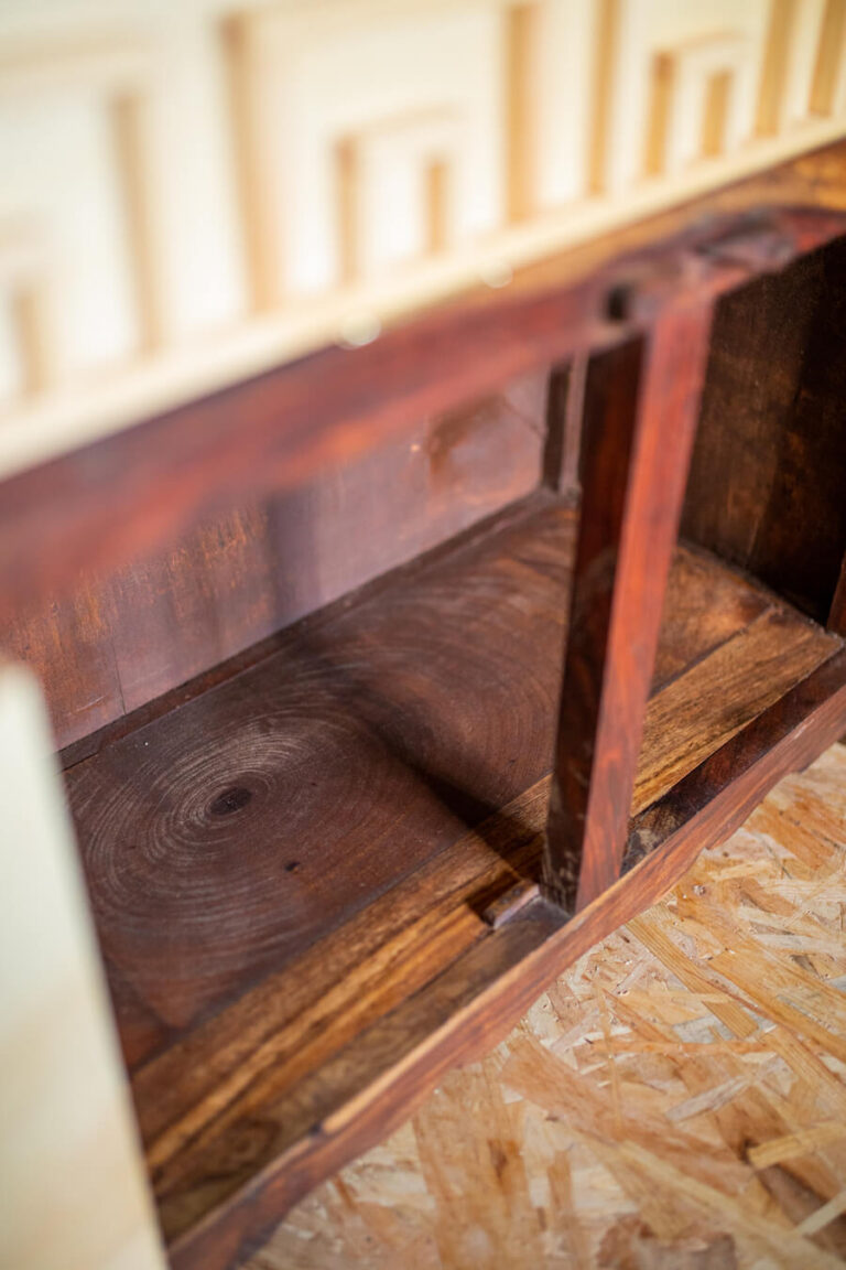 Cuando empecé a lijar me empecé a dar cuenta de lo especial del mueble y la manera artesanal en la que estaba hecho. Incluso se pueden apreciar los anillos del árbol en algunas maderas, algo muy poco usual.