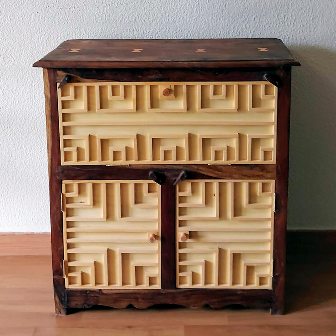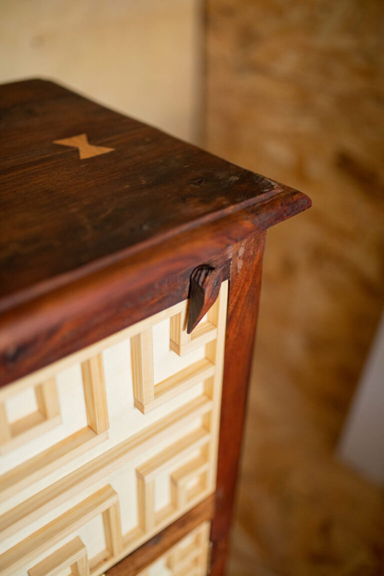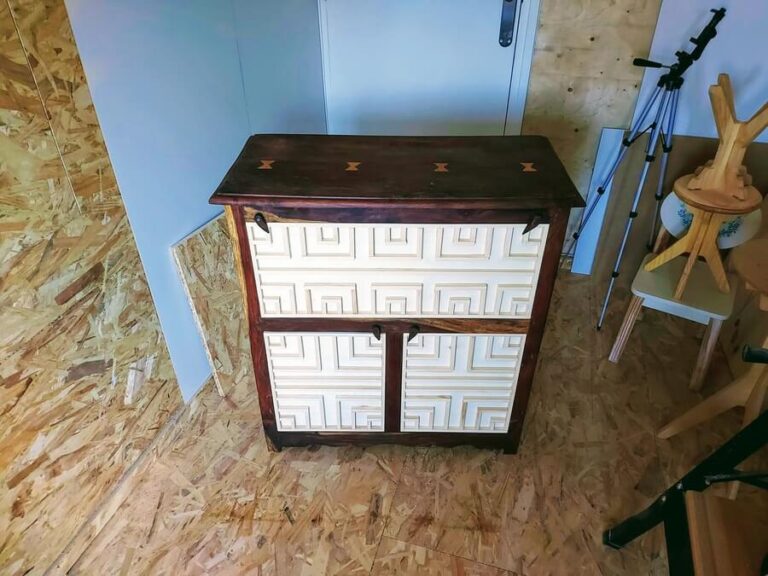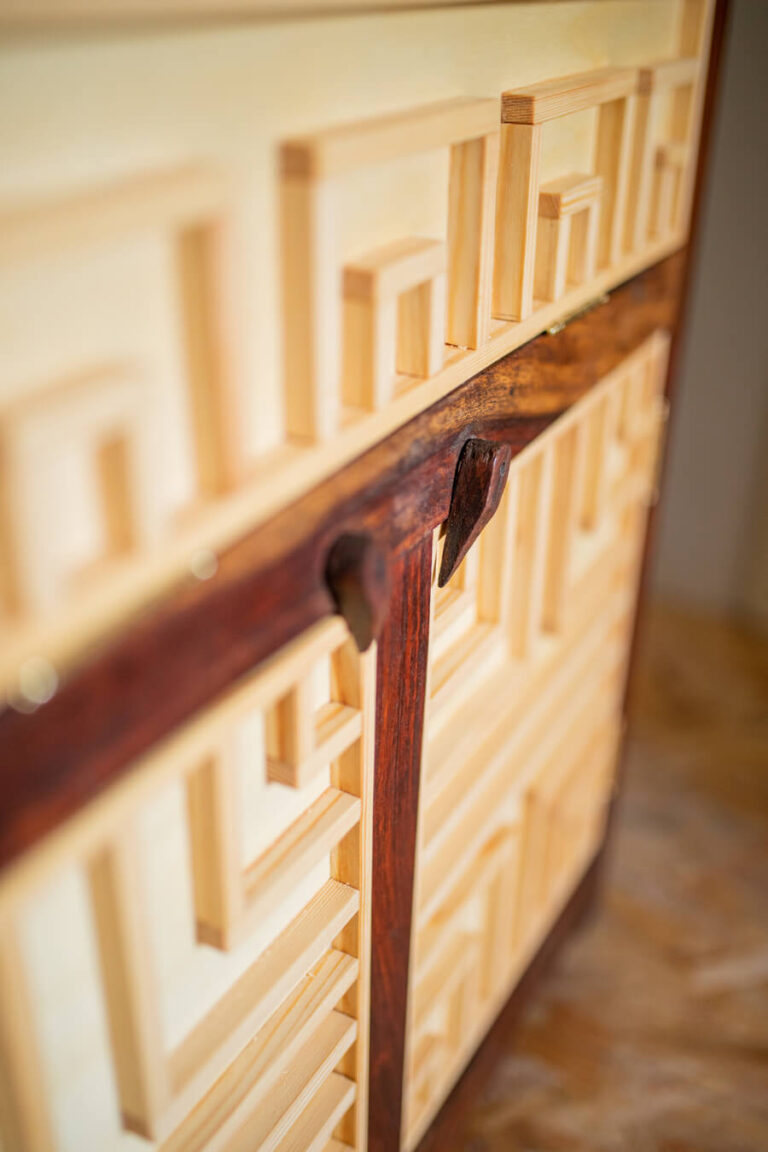 Una vez acabado el trabajo y cuando empecé a nutrir el mueble con aceite, los colores empezaron a cobrar vida y todo cobró sentido. En ese momento decidí llamarlo SAKURA (cerezo en flor) porque de alguna manera sentí que el mueble había vuelto a florecer.
