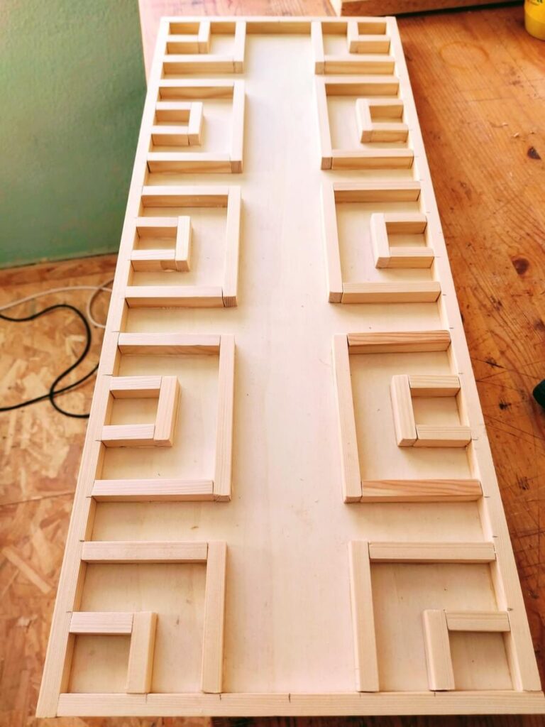 Cuando empecé a probar las puertas y ver como quedaban me empecé a dar cuenta de que sin pretenderlo me había salido el amante de la cultura japonesa que llevo dentro. Tenía un cierto aire a los muebles japoneses hecho con la técnica de KUMIKO, salvando las distancias ;).
